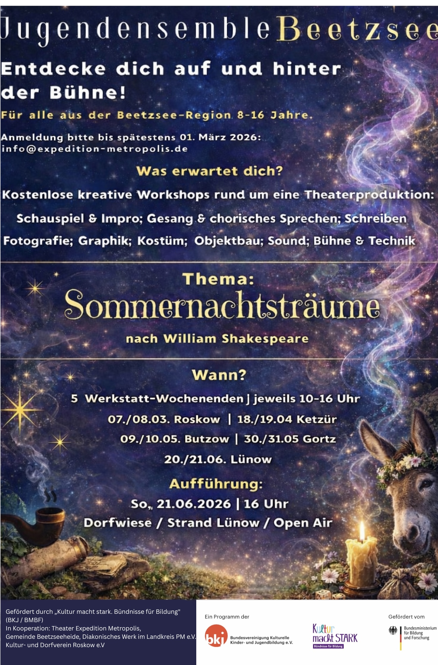 Theater Expedition Metropolis / Gemeinde Beetzseeheide / Diakonische Werk im Landkreis Potsdam Mittelmark e.V. / Kultur- und Dorfverein Roskow e.V.