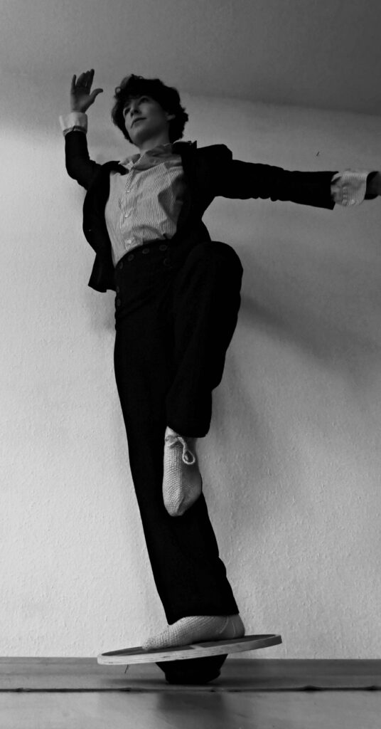 Irene De Matteis è filosofa, performer e cantante. La sua ricerca intreccia corpo, parola e immaginario, esplorando la relazione tra gesto, limite e sogno. A Berlino conduce laboratori di formazione e creazione scenica, concentrandosi sull’inclusione sociale, il multilinguismo e la performance collocata spesso in spazi e contesti ai margini del convenzionale.