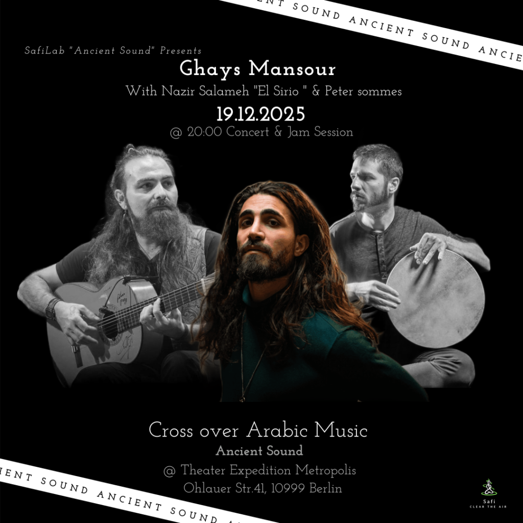An diesem besonderen Abend wird Ancient Sounds zu einer musikalischen Reise über kulturelle Grenzen hinweg – dorthin, wo arabischer Gesang, Flamenco und Improvisation einander begegnen. Ghays interpretiert Klassiker von Mohamed Abdelwahab, Sayed Darwish und Ziad Rahbani neu und verbindet sie mit eigenen Kompositionen und Gedichten – ein frischer Dialog zwischen Tradition und Innovation.